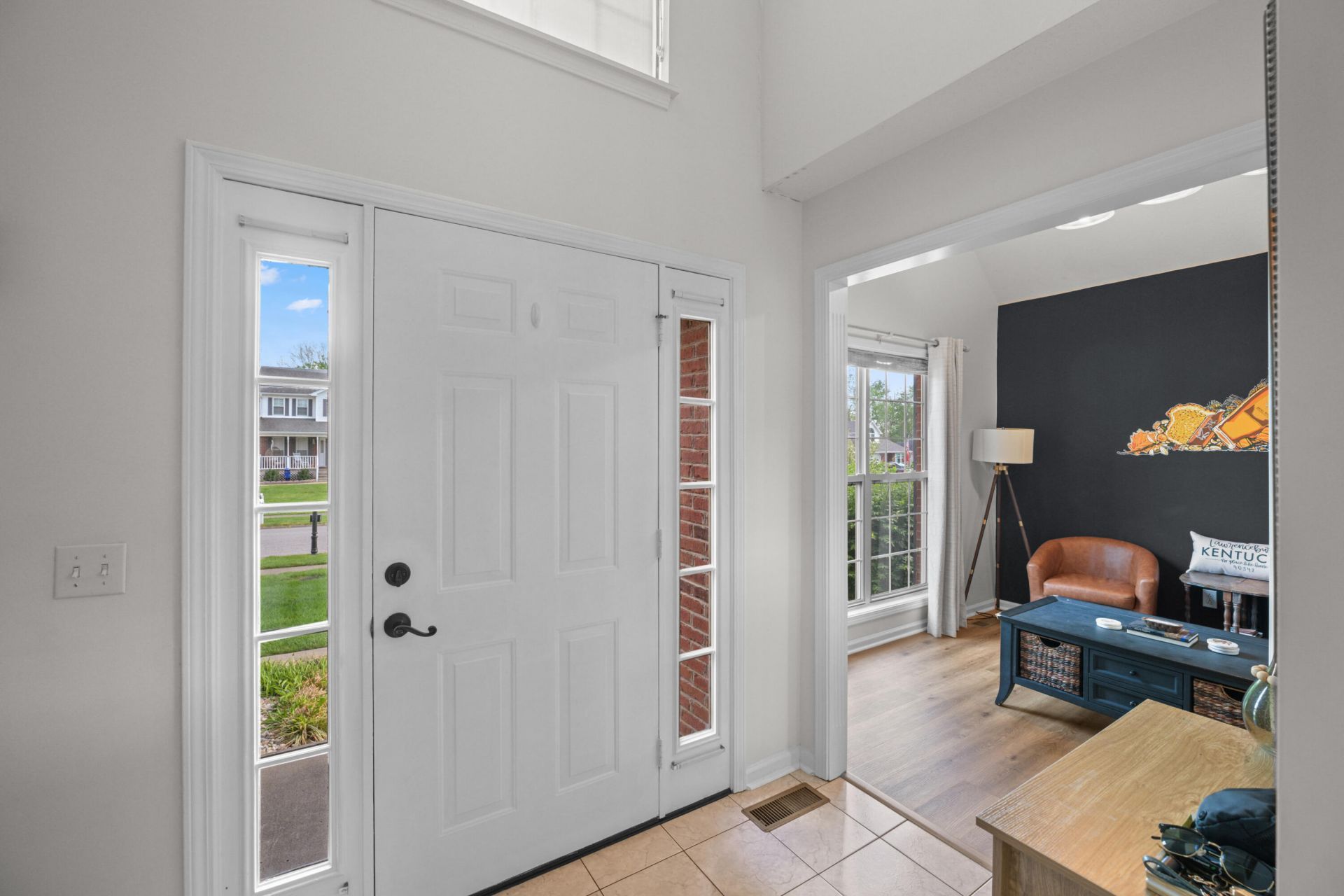 Looking for a beautifully updated home with a first floor primary bedroom on a spacious lot in the heart of Lawrenceburg? You've found it here! Featuring a stunning kitchen remodel completed in 2022, brand new LVP flooring, and fresh paint throughout, this place is absolutely move-in ready. The main floor welcomes you with a two-story foyer, where you'll find a stylish home office/sitting room to your left. The front hallway opens into a wonderful living room with vaulted ceilings, which connects to the dining area and remodeled kitchen via a fantastic open floor plan that's perfect for entertaining friends and enjoying time spent with family. The kitchen boasts a breakfast bar, sleek stainless appliances, plenty of countertop space and cabinet storage, and a subway tile backsplash. The first-floor primary bedroom is more than large enough for a king sized bed and additional furniture, and the ensuite bath is highlighted by a jetted tub, separate shower, and a walk-in closet. A laundry room and half bath complete the first floor amenities. Upstairs, you'll find two bright and airy additional bedrooms, a sizable bonus/flex space that could also be used as a fourth bedroom, a full bathroom, and a hallway overlooking the living room that helps the spaces feel connected. The back yard is flat and fully fenced, with a large deck for spending summer nights outside and a tree line behind you making everything feel secluded. This is a special home in a desirable neighborhood, priced below recent appraisal! Schedule your private tour today.